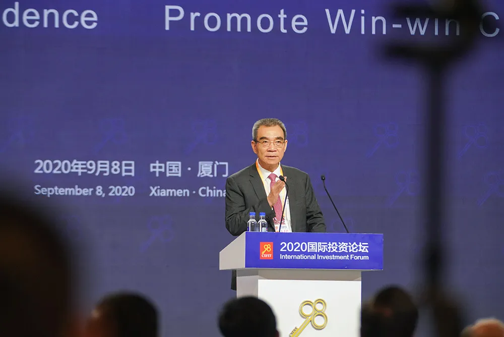 Justin Yifu Lin, honorary dean of the National School of Development at Peking University, delivers a speech at a forum during the 2020 China International Fair for Investment and Trade. [photo by Xiao Heyong/Xinhua]