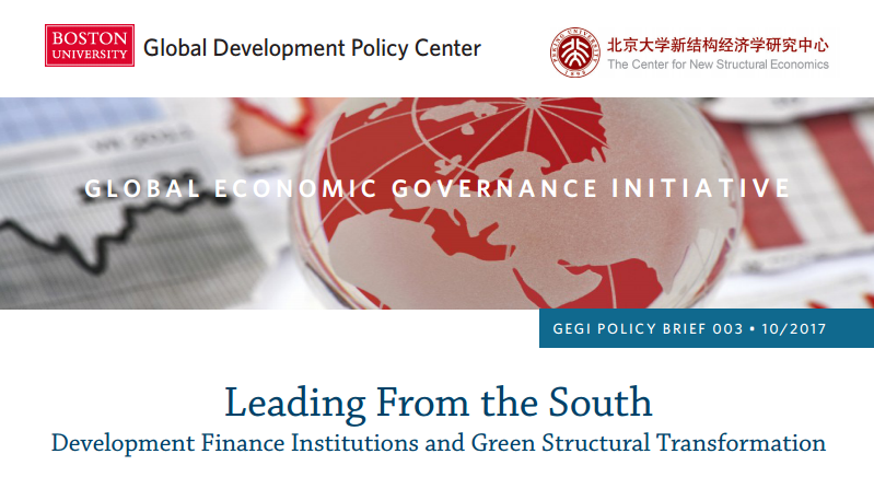 To help fill the knowledge gap on Southern-led development banking, the Center for New Structural Economics at Peking University and the Global Economic Governance initiative (GEGI) at Boston University’s Global Development Policy Center (GDP Center) convened a June 2017 Beijing workshop of senior development bank officials from 6 Southern-led Development Finance Institutions (SDFIs) to assess the extent to which development banks are becoming catalysts for achieving a climate friendly and more socially inclusive economy and to learn from each other’s experiences.