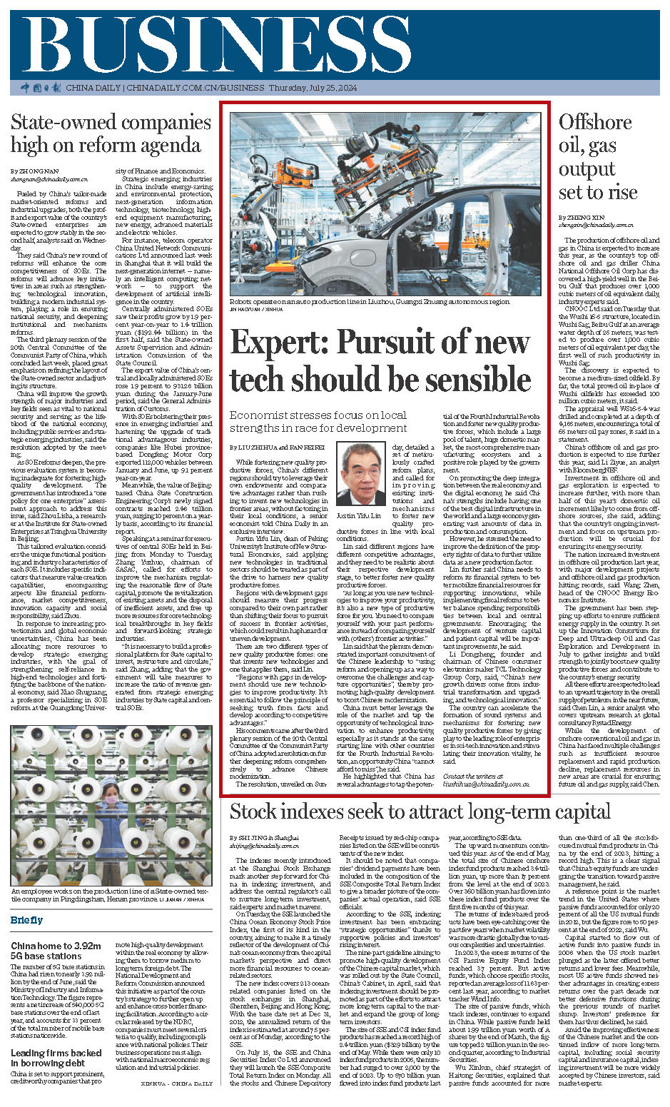 Justin Yifu Lin, dean of Peking University's Institute of New Structural Economics, said applying new technologies in traditional sectors should be treated as part of the drive to harness new quality productive forces.