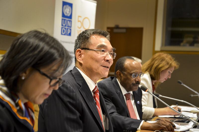Prof. Justin Yifu Lin, Chair of the GReCEST, addressing the Launching Ceremony on May 18, 2016 in the U.N.