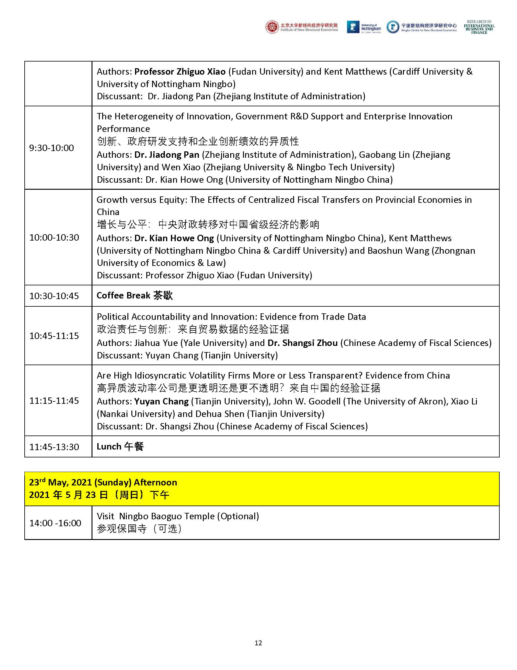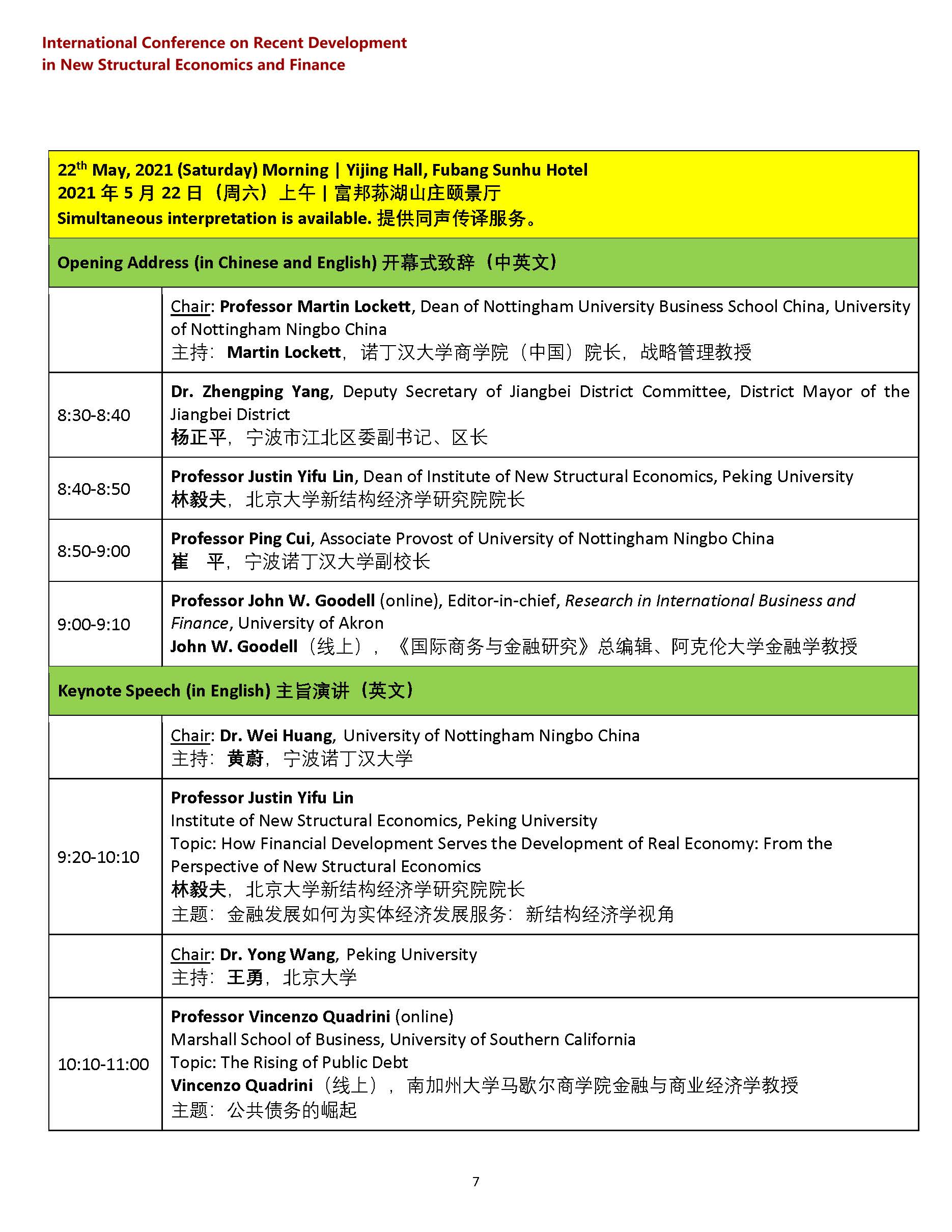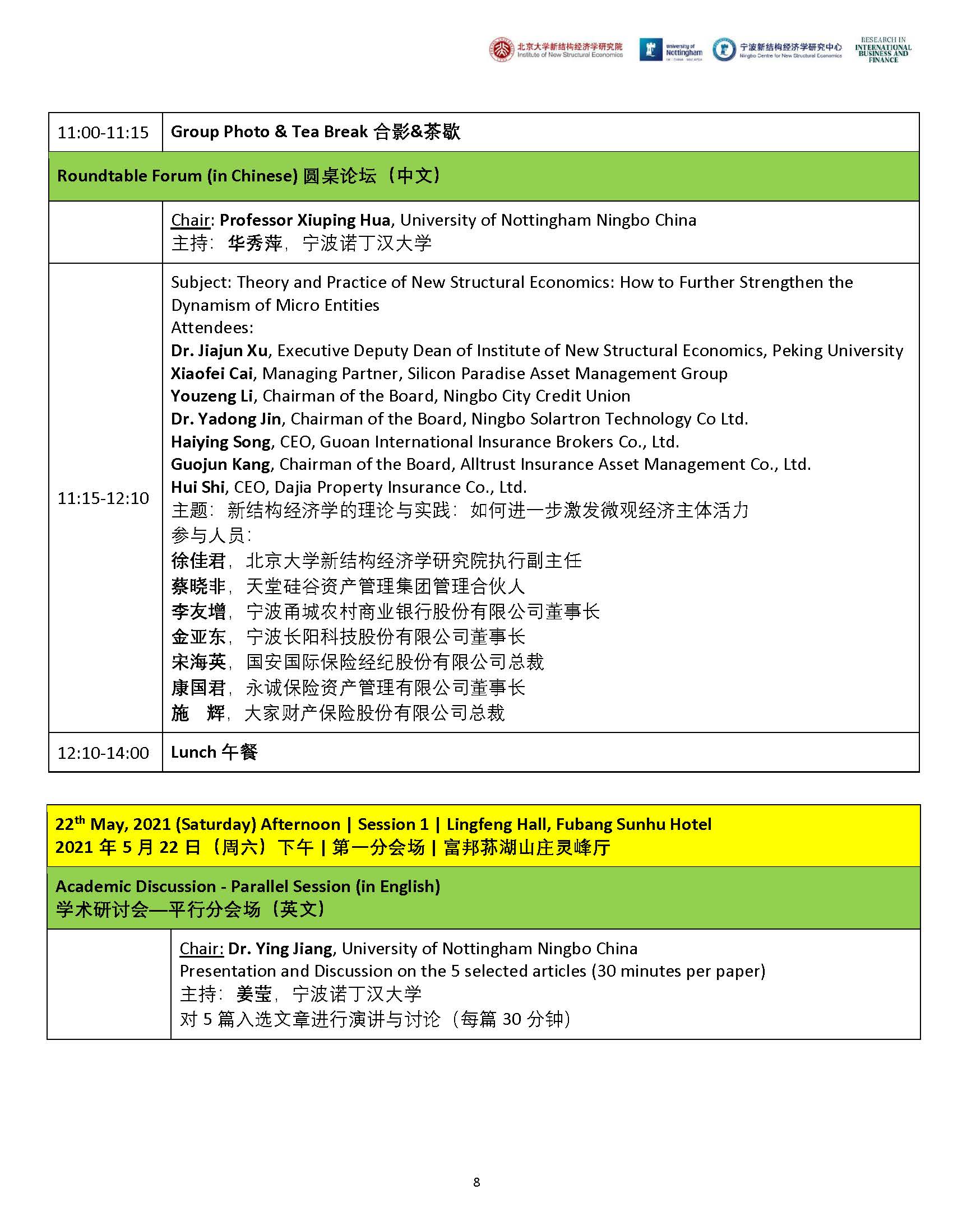 In order to discuss the recent development in new structural economics and finance, and to enhance the impact of new structural economics at home and abroad, International Conference on Recent Development in New Structural Economics and Finance is going to be held in Ningbo on 22-23 May 2021. The conference is hosted by The Institute of New Structural Economics, Peking University, Ningbo Jiangbei District People's Government, Ningbo Centre for New Structural Economics, University of Nottingham Ningbo China, and is supported by Research in International Business and Finance, Ningbo City Credit Union, Ningbo Solartron Technology Co Ltd., Peking University Alumni Association (Ningbo). The Conference will be conducted both online and offline, and the official working language is English. Experts and scholars at home and abroad are invited to discuss the theory and practice of new structural economics.