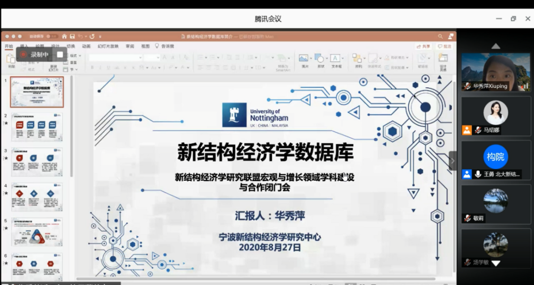 宁波新结构经济学研究中心副主任、宁波诺丁汉大学教授华秀萍介绍了新结构经济学数据库框架,阐述了数据库内全球宏观经济数据、中国宏观经济数据、中国行业经济数据、中国企业动态数据的情况与应用前景,表示愿与各位学者共建数据库,共同推动新结构经济学宏观领域研究。