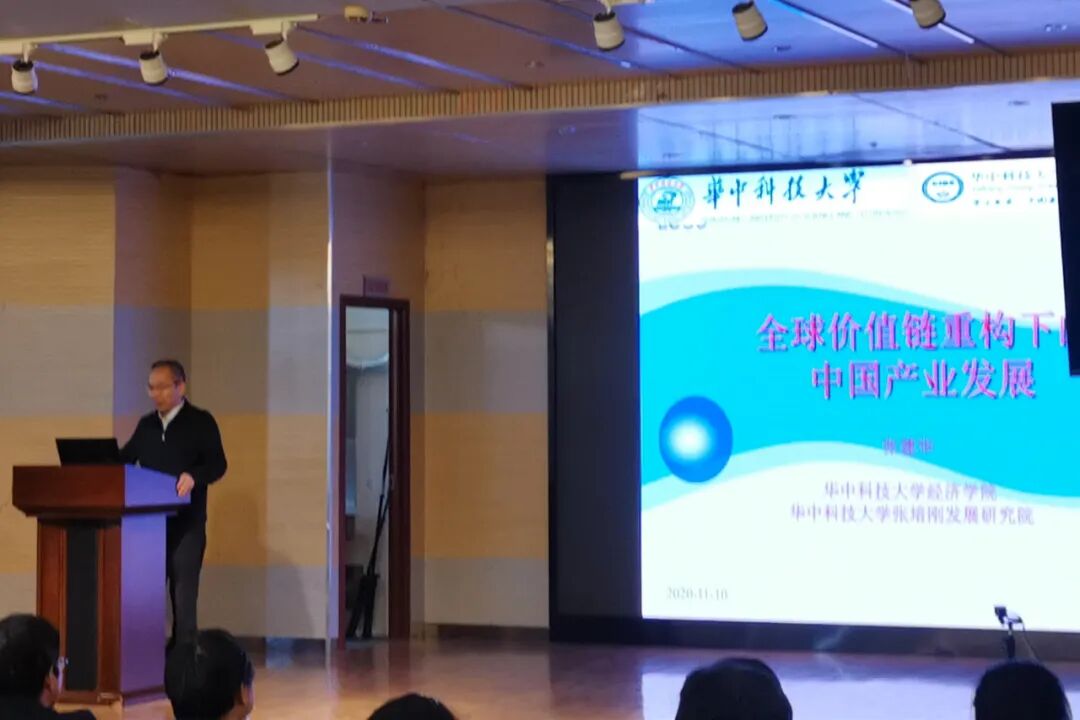 最后,张建华院长发表了《全球价值链重构下的中国产业分工发展》演讲。张建华院长认为,在当前复杂严峻的国内外环境下,要打造中国主导的全球价值链领军企业,构建双循环相互促进的新发展格局。嘉宾们精彩纷呈的演讲赢得了台下热烈的掌声。