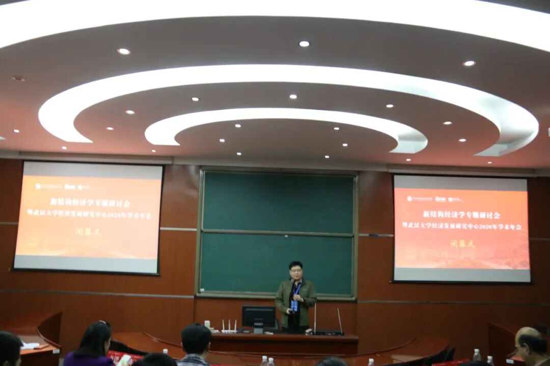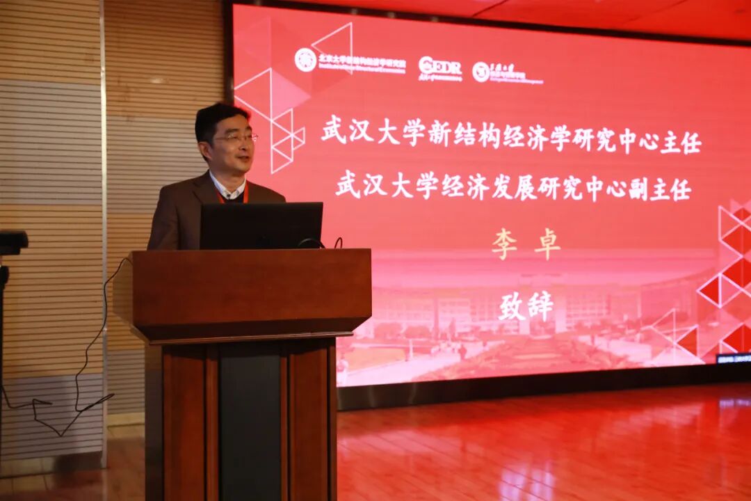 开幕式最后一项由武汉大学新结构经济学研究中心主任、经济发展研究中心副主任李卓教授致辞,李卓教授介绍了武汉大学新结构经济学研究中心的创办历史,结合不久前结束的十九届五中全会,希望以新结构经济学为代表的发展经济学能在十四五规划中发挥应有的作用。