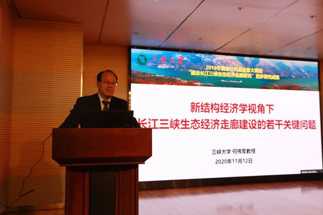 何校长立足新时代长江三峡生态经济走廊的背景,结合新结构经济学“有效市场”和“有为政府”的思想理念,汇报了长江三峡生态经济走廊建设的成果,阐释了新形势下如何推进整体和把握重点、兼顾生态环保和经济发展、做到总体谋划和久久为功、破除旧动能和培育新动能、实现自我发展和协同发展,力争以长江经济带发展推动经济高质量发展。