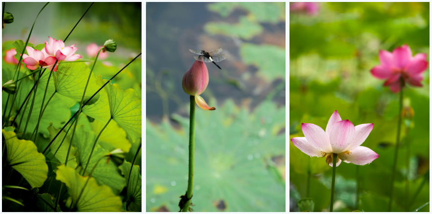 蜻蜓翅尖悬在小荷尖尖角上,季莲也将要次第绽放。取景框里定格在骤雨初歇的午后,清荷的绿浪泼向云影徘徊的天际。