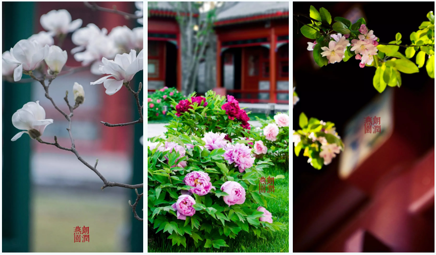 三月垂柳迎着后湖的碧波,玉兰擎着灰瓦,更有四月的牡丹盛放,摄影师的镜头捕捉到廊桥拐角处,一树西府海棠正以工笔技法晕染红霞。