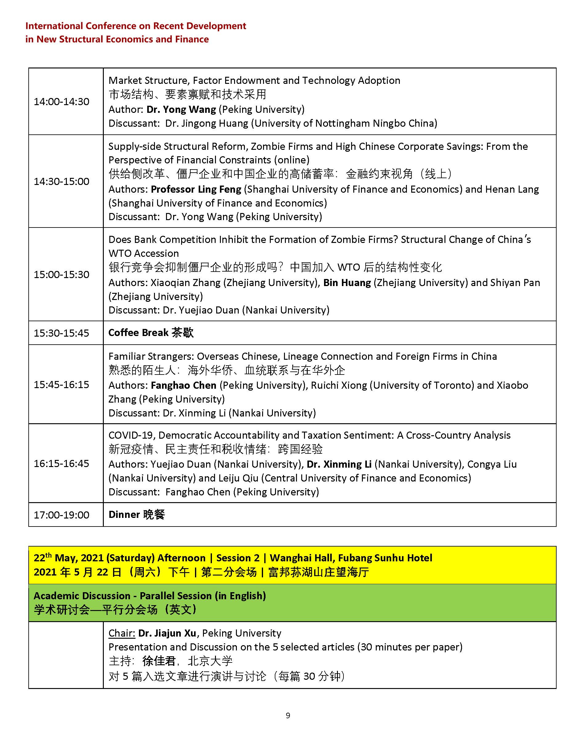 In order to discuss the recent development in new structural economics and finance, and to enhance the impact of new structural economics at home and abroad, International Conference on Recent Development in New Structural Economics and Finance is going to be held in Ningbo on 22-23 May 2021. The conference is hosted by The Institute of New Structural Economics, Peking University, Ningbo Jiangbei District People's Government, Ningbo Centre for New Structural Economics, University of Nottingham Ningbo China, and is supported by Research in International Business and Finance, Ningbo City Credit Union, Ningbo Solartron Technology Co Ltd., Peking University Alumni Association (Ningbo). The Conference will be conducted both online and offline, and the official working language is English. Experts and scholars at home and abroad are invited to discuss the theory and practice of new structural economics.