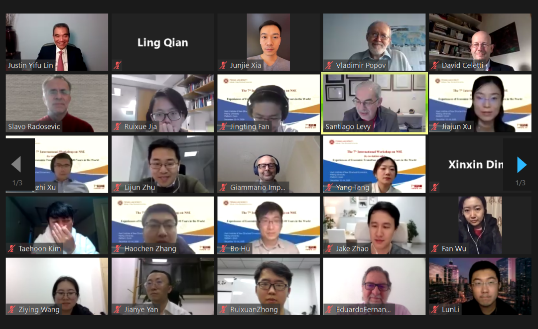 2020年12月12-15日,为期四天的第七届新结构经济学国际研讨会在线上圆满举行。本次研讨会由北京大学新结构经济学研究院主办,主题为 “对过去40年经济转型国际经验的反思” 。近50位国内外前沿学者通过线上会议的形式,就 “中国技术变革与经济增长” 、 “开放与经济增长” 、“政治经济与经济改革”、“转型期与新兴经济体的金融产业升级”四个专题进行广泛交流讨论。