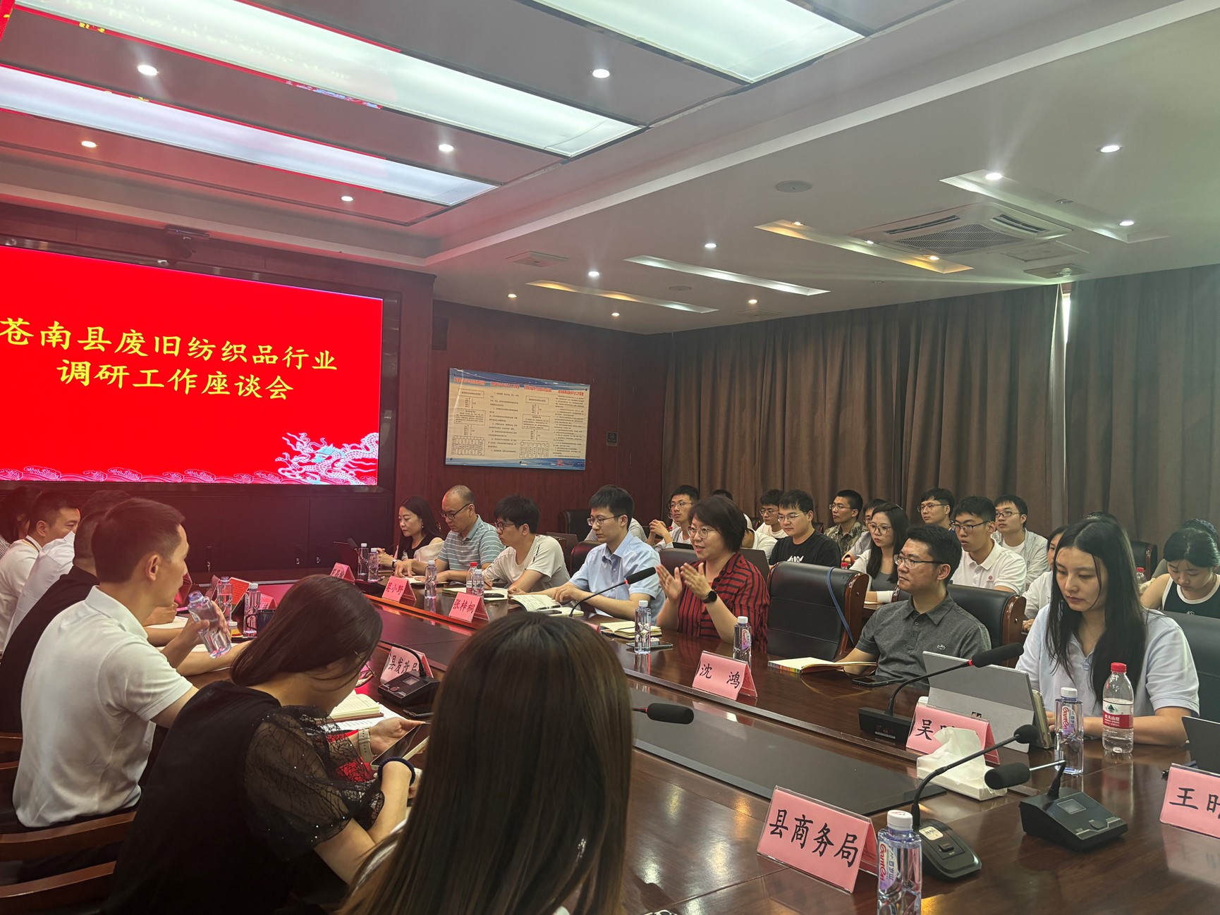通过此次调研,调研组深入了解了苍南县再生纺织业和清洁能源产业的发展现状。苍南县的再生纺织业,凭借其悠久的历史底蕴与迅猛的发展态势,已深度融入国际市场,产品体系广泛覆盖衣裤、帆布、家用拖把、宠物护理用品等众多品类,都已远销至全球多个国家和地区,展现出其与世界接轨的强劲实力与无限潜力。在地区产业发展面临挑战和瓶颈时,当地政府通过进一步规范市场运营,帮助地区企业实现规模化、集约化发展,通过开展环保产业论坛、参与再生纺织业标准制定等方式,讲好再生纺织业的发展故事,助力苍南社会经济全方面健康有序发展的同时进一步追求绿色转型与碳汇优化。