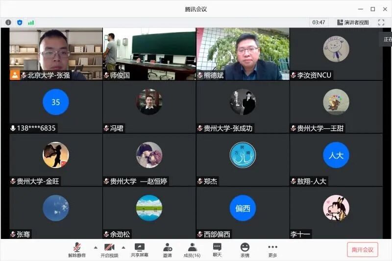 为期8天的研讨会共涵盖了《解读中国各地经济》系列的5门著作(《解读贵州经济》《解读西藏经济》《解读上海经济》《解读江西经济》《解读重庆经济》)和新结构经济学子学科的9门课程教材(《新结构金融学》《新结构区域经济学》《新结构经济学研究方法入门》《新结构国际经济学》《新结构劳动经济学》《新结构环境经济学》《新结构资源经济学》《新结构制度经济学》《新结构创新经济学》),除《新结构金融学》是第二轮研讨会(已于2019年11月召开启动研讨会)以外,其他著作与课程教材均为第一轮启动研讨会。以下是线上线下同步研讨会的盛况: