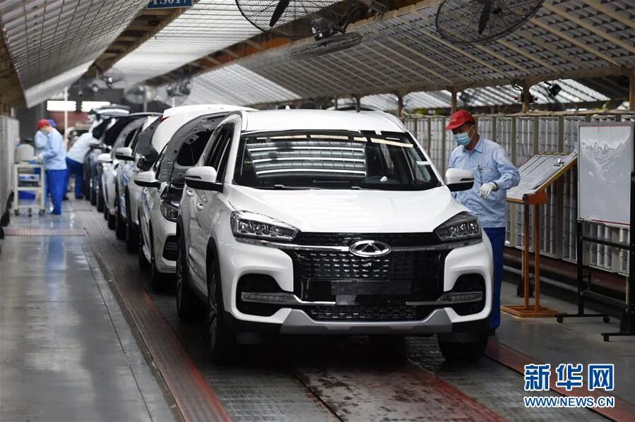 ▲5月20日,在位于安徽省芜湖市的奇瑞汽车股份有限公司,工人在总装三车间忙碌。新华社发(周牧 摄)